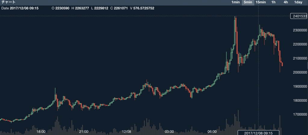というよりも、一時的に240万くらいまで価格は上がっていたようで、もはやお祭りモードでした。