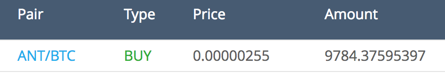 さて、Newって書いてある通貨ですね。ANTという草コインに入りました。