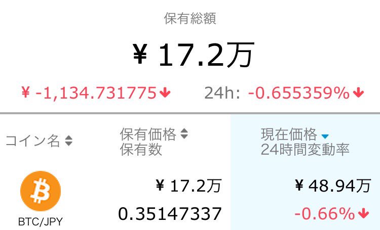 暴落相場も落ち着いてきて、現在のblockfolioは緑が多いです。