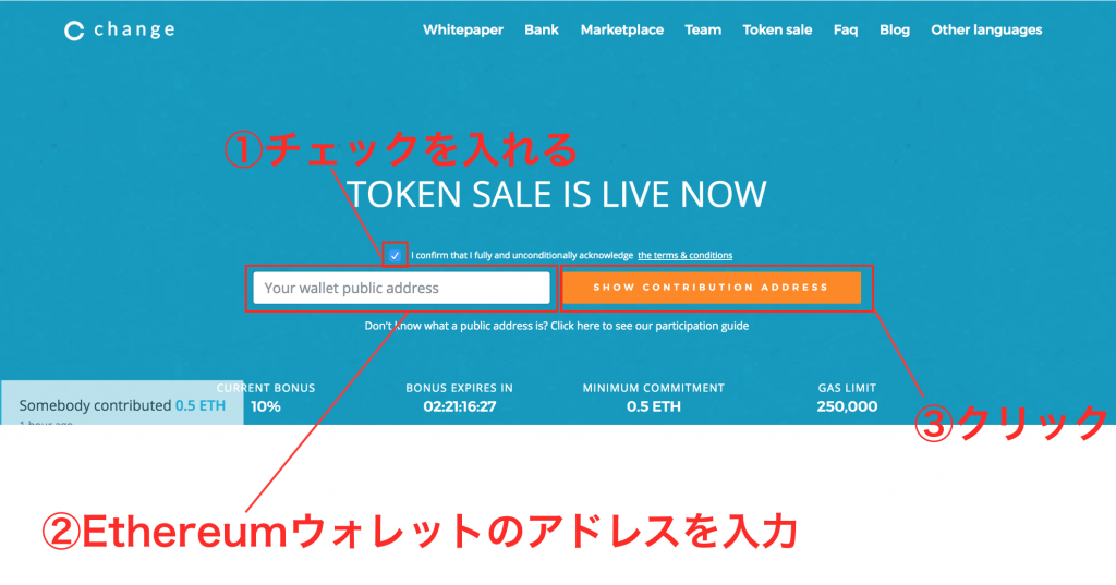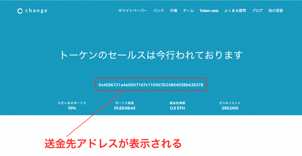 今回は、Change のICOを例にして進めてみたいと思います。