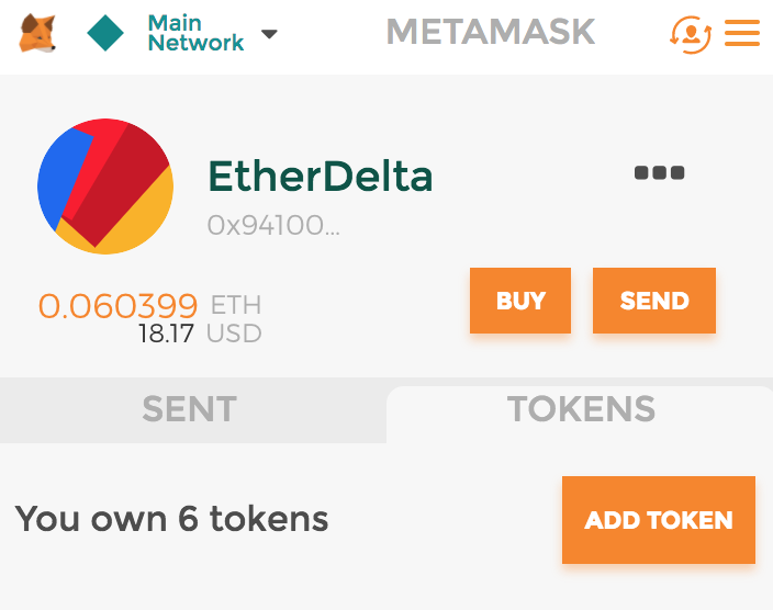 1.TOKENSタブをクリックし、ADD TOKENSをクリックします。