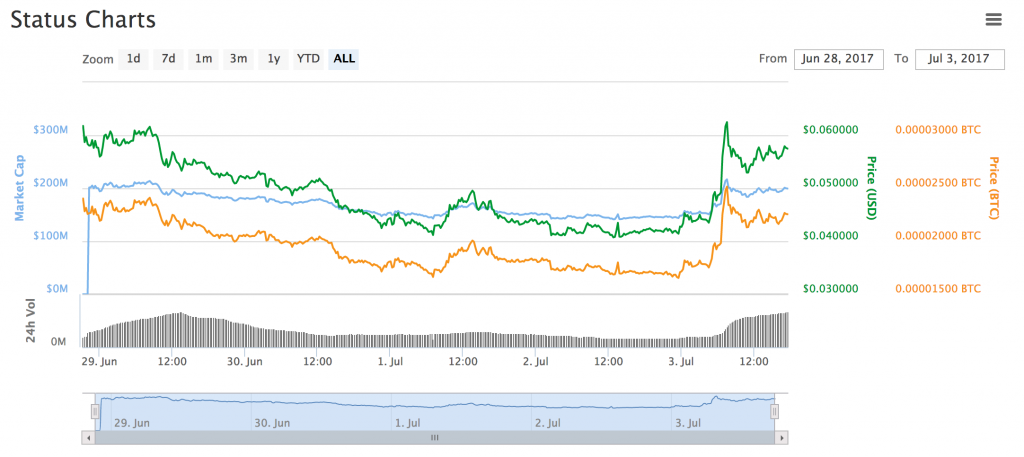 仮想通貨 Status(ステータス)/SNTが取引所に上場
