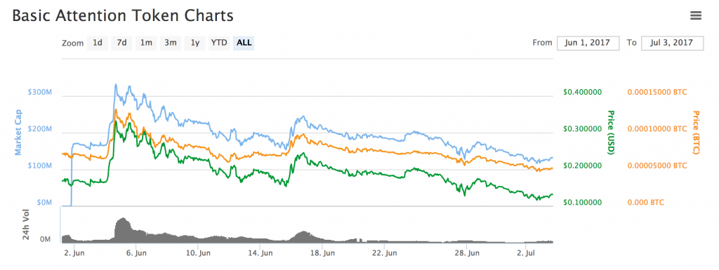 BATも上場直後が一番高く、現在は最低価格を更新しています。