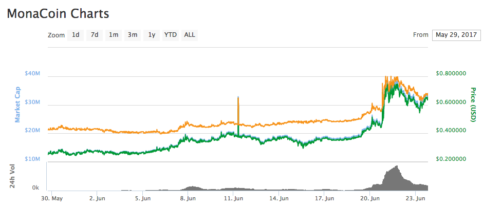 因みに7月にMonacoinは半減期を迎える影響か、現在の価格は非常に暴騰ww