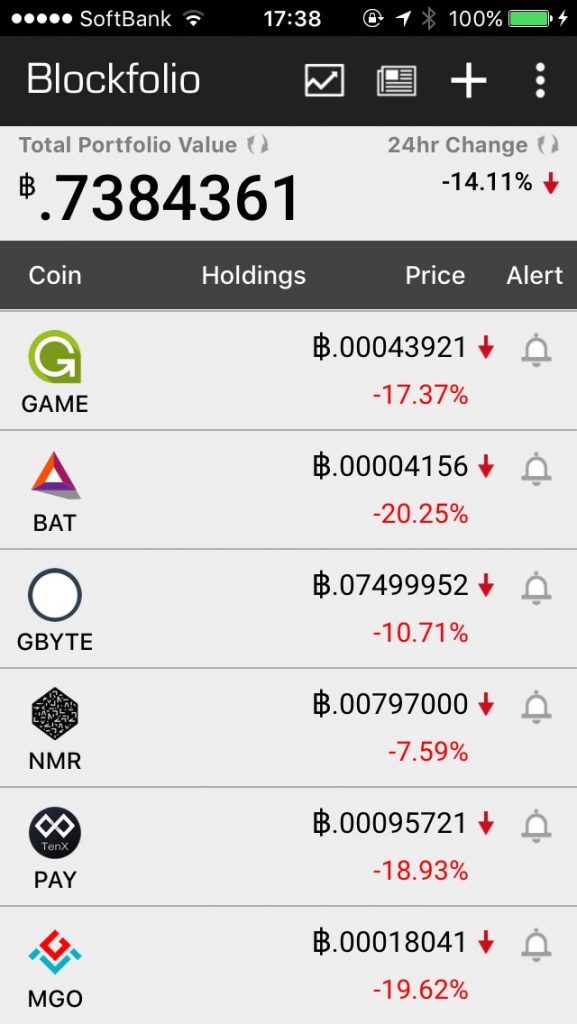 日本円建てで見ると一部プラスとなっていますが、XMRもDASHもビットコイン建てで見ると、真っ赤なです。アルトコインでポートフォリオを組んでいる方は大打撃ではないでしょうか!