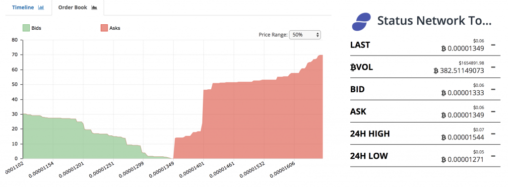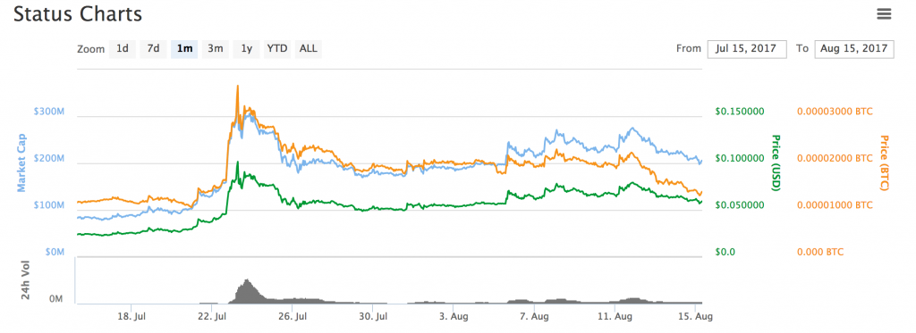 SNT(ステータスネットワークトークン)の価格はビットコイン分裂問題前の価格に