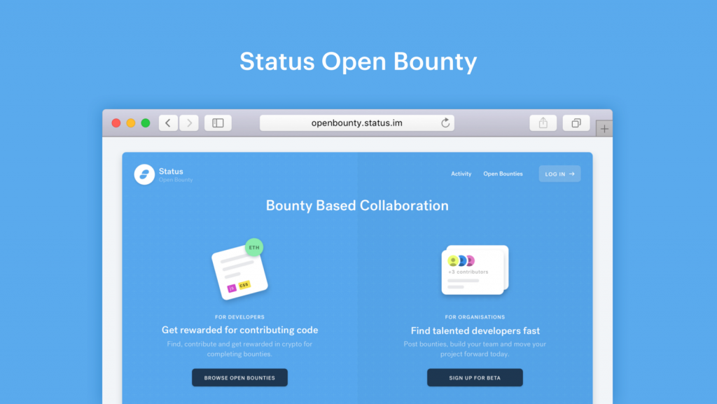 Status Open Bountyでは自社を含む組織に、開発を分散させるための道を提供することを目的としていします。